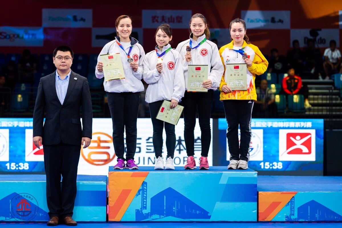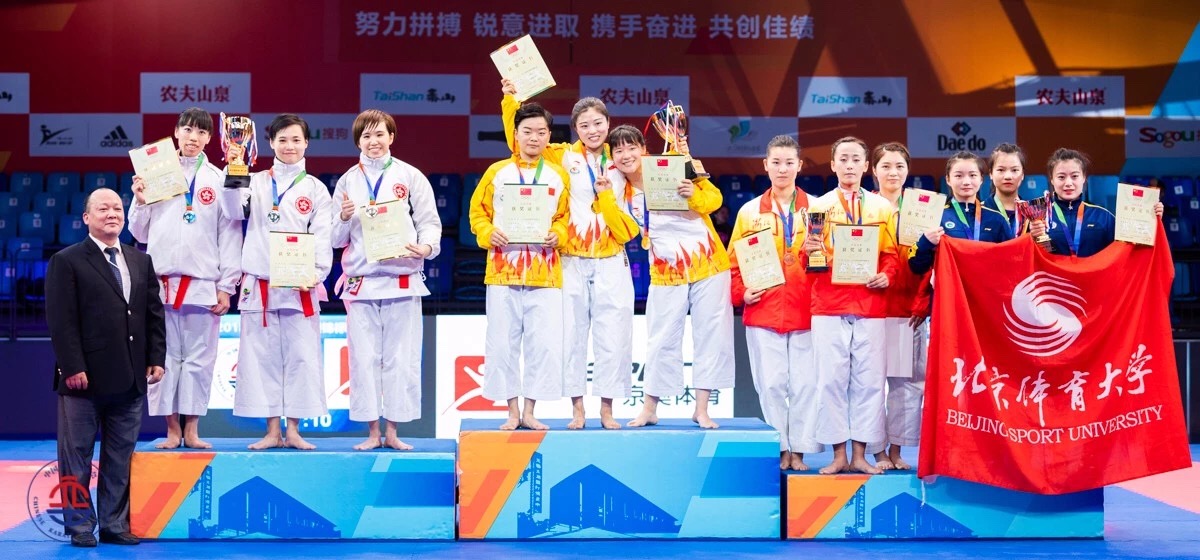 本网讯 5月18至23日,上海体育学院空手道队派选了8名运动员参加2018年全国空手道锦标赛第二站比赛。我校学生在本次比赛中展现出了扎实的基本功和对技术的灵活运用,在团体赛和个人赛中均取得良好的成绩。经过三天的激烈比拼,共获得一金、一铜的佳绩(其中汤冰、唐诗艺、郑钧如获得了女子团体型冠军;马抒情获得季军)。