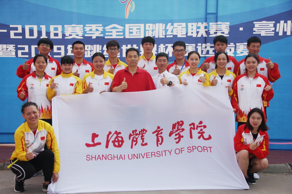 本网讯 6月1日至4日,由国家体育总局社会体育指导中心、中国大学生体育协会、中国中学生体育协会联合主办的2018年全国跳绳联赛(亳州站)暨2019年跳绳世界杯赛选拔赛在亳州市隆重举行。我校花样跳绳队以休艺学院副院长刘树军为领队(同时担任赛事仲裁),韩耀刚为教练,23名运动员经过2日、3日两天的奋力拼搏,在核心项目中取得的6金的优异成绩,韩耀刚老师获优秀教练员称号。