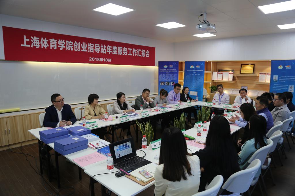 本网讯 10月18日下午,上海体育学院创业指导站年度服务评估考察汇报会在我校顺利召开。上海高校创业指导站评估组一行10位专家对我校建设的创业指导站情况进行了考察与评估。团委书记、学工部副部长梅朵,经济管理学院总支副书记、上海市职业生涯授渔工作室负责人熊静,上海体育国家大学科技园总经理张忠,创新创业指导中心主任陈伟,就业指导中心副主任庄娜,上海体育国家大学科技园办公室主任李海森,创业导师工作室黃聚云,辅导员创新创业团队负责人徐振以及创新创业辅导员工作团队等相关负责人出席会议,并向工作组汇报了创业指导站的建设情况。