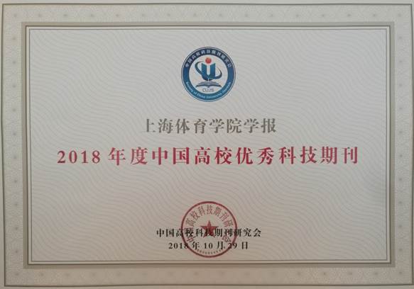 本网讯 2018年11月4-6日,中国高校科技期刊研究会第22次年会在重庆召开,会议发布了“2018年度中国高校杰出•百佳•优秀科技期刊”遴选结果。我校主办的《运动与健康科学(英文)》《上海体育学院学报》分别获评“2018年度中国高校杰出科技期刊”和“2018年度中国高校优秀科技期刊”。