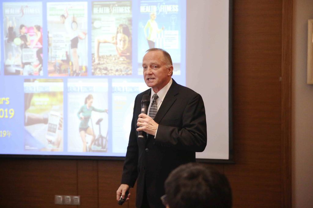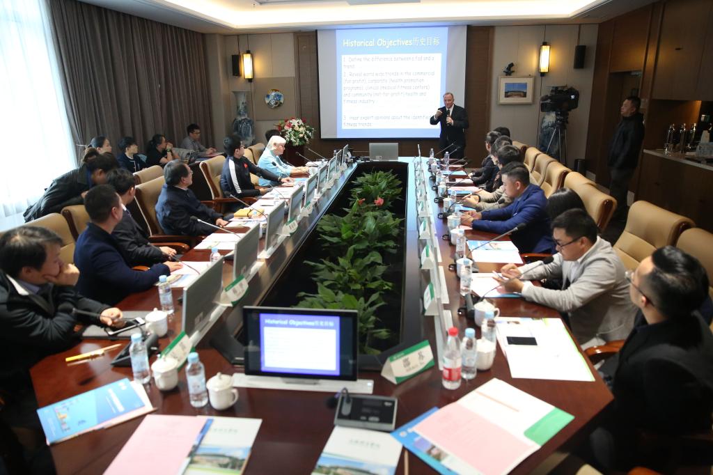 本网讯 11月29日下午,上海体育学院与美国运动医学学会(ACSM)一道向社会发布了《2019中国健身趋势》和《2019全球健身趋势》。出席发布会的有ACSM退任主席Walter Thompson、前主席Barbara Ainsworth和上海体育学院院长陈佩杰,以及20名国内健身行业专家和上海体育学院《中国健身趋势调查》课题组成员。发布会由上海体育学院教授曹振波主持,上海体育学院教授黎涌明代表课题组公布了《2019中国健身趋势》,Walter Thompson代表ACSM公布了《2019全球健身趋势》。