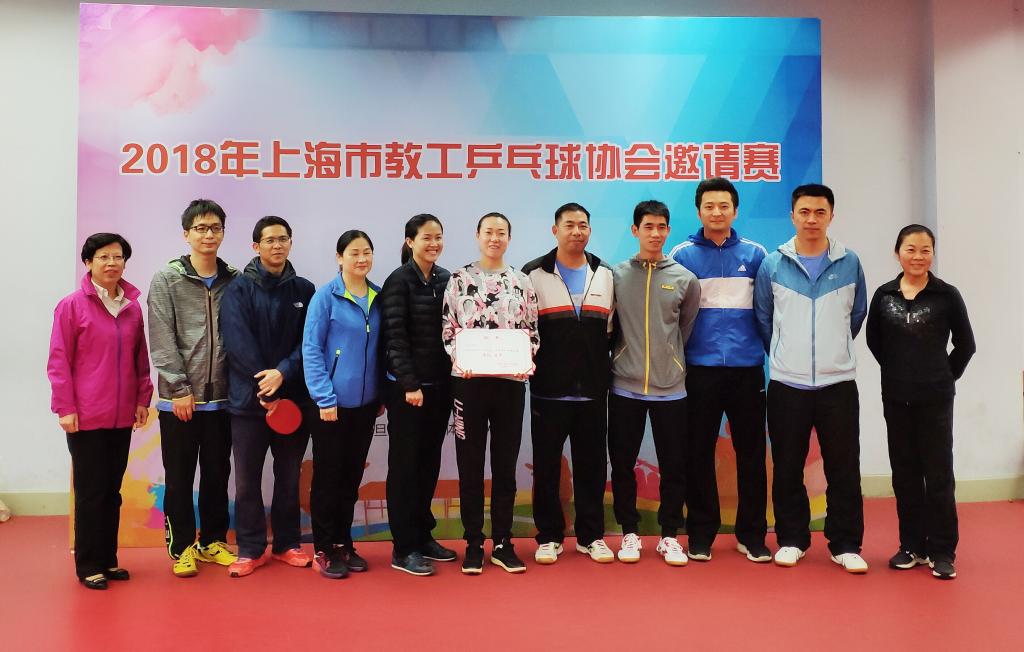 本网讯 12月1日, 由上海市教育工会主办的2018年上海市教工乒乓球协会邀请赛在复旦大学南区乒乓球馆举行,我校代表队以较大优势战胜其他参赛队勇夺第一名。