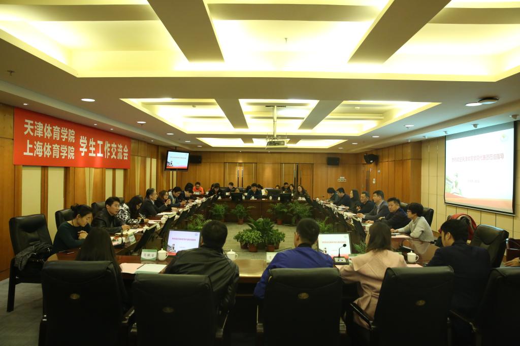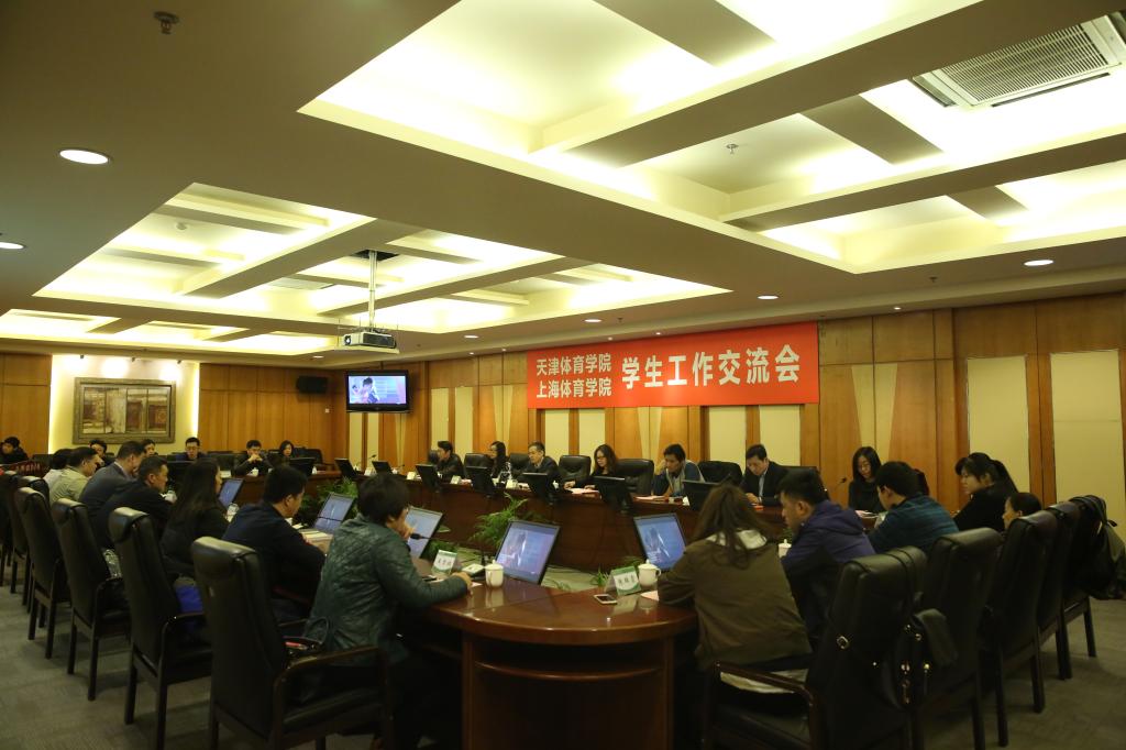 12月5日上午,两校交流座谈会在图文信息楼第一会议室举行。天津体育学院党委副书记张立顺、党委学工部部长张锋、体育教育与教育科学学院分党委书记马桂霞、运动训练科学学院党总支书记张志斌,以及我校党委副书记、副院长陈晓峰,党委研工部部长殷勤,体育教育训练学院党总支书记赵晓晗,运动科学学院党总支书记焦振伦出席交流座谈会。参加座谈会的还有来自两校的学生工作条线教师二十余名。
