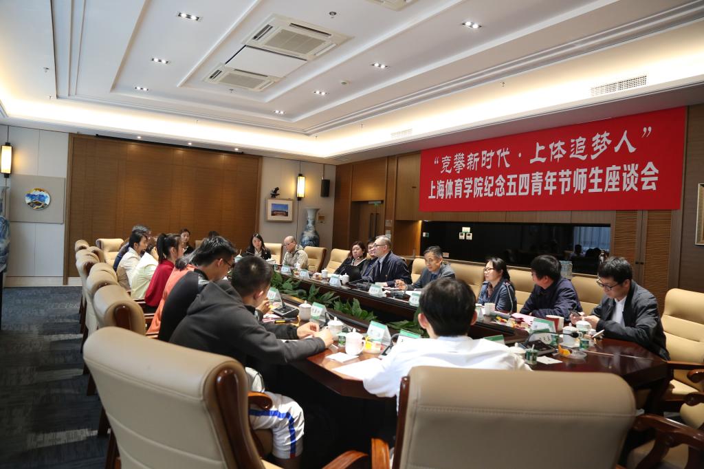 本网讯 4月30日中午12点,学校“竞攀新时代·上体追梦人”纪念五四青年节师生座谈会在体育交流中心第一会议室举行。学校党委书记李崟,党委副书记、副院长陈晓峰出席座谈会并讲话。座谈会由党委学工部副部长程华主持。