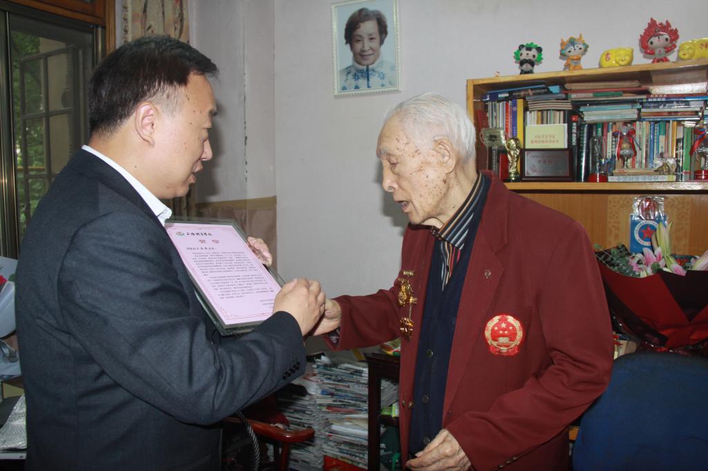 师表才情堪敬仰,鲐背不愧焕神容。九十人生,历经沧桑,公正执裁,矢志报国。您是享誉中国篮球界的“金哨”,曾被授予我国首批国家级篮球裁判称号,是终身荣誉国际级裁判,更是新中国体育事业的开拓者和贡献者。您有着六十余年党龄,始终铭记誓言,为我国体育高等教育事业殚精竭虑。自到上海体育学院任教工作以来,您为培育高水平体育人才呕心沥血、竭诚奉献,您的从教实践、师德师风凝结成上海体育学院的宝贵精神财富,在学校发展历程上书写了精采篇章。