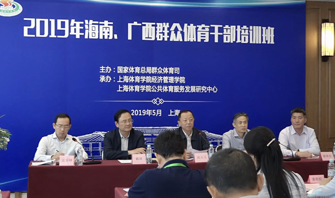 本次培训班由国家体育总局群体司主办,上海体育学院经济管理学院、公共体育服务发展研究中心承办。来自海南和广西等地的100名学员参加了此次培训,培训内容涵盖体育事业改革与发展的政策与环境解读、群众性体育赛事运行、体育社会组织发展培育、体育行政部门职能转变、全民健身场地设施建设与管理等。