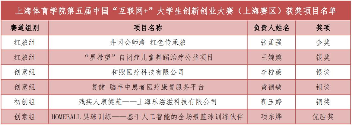 今年,学校高度重视,专门研究制定《上海体育学院创新创业社会实践“金课”建设方案》(2019-2021)(讨论稿),全面升级“互联网+创新创业大赛”组织参赛工作能级,将互联网+创新创业大赛作为深化创新创业教育改革的重要抓手,以大赛为牵引,以目标为导向,大力推进创新创业社会实践“金课”建设。未来我校将继续健全完善创新创业工作机制,努力推进创新创业政策改革,进一步提高创新创业教育与人才培养及高校科研成果转化的集合程度,推进双一流人才培养质量的提升。