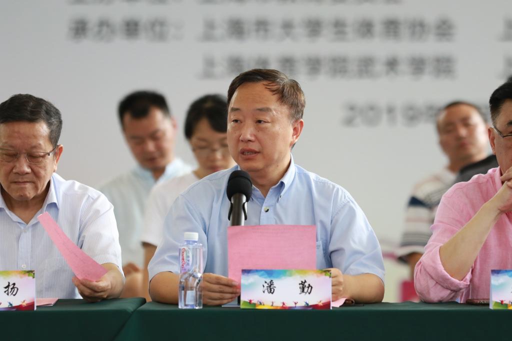 潘勤致欢迎词,他强调武术是中华民族的瑰宝,是中国人民气节的体现,举办“小宗师”武术夏令营项目,既发挥了上体武术专业的优势,也为武术特长和潜质的中小学生成才、成长提供高水平指导,意义重大。