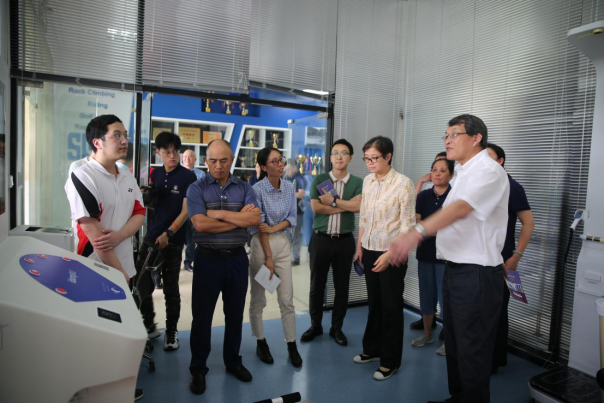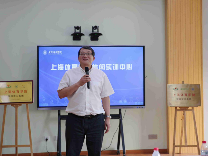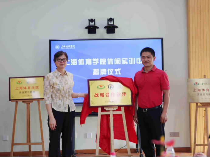 仪式伊始,上海体育学院党委副书记、院长陈佩杰与党委副书记、纪委书记詹萌为休闲实训中心揭牌,并与全体人员参观、体验了实训中心。