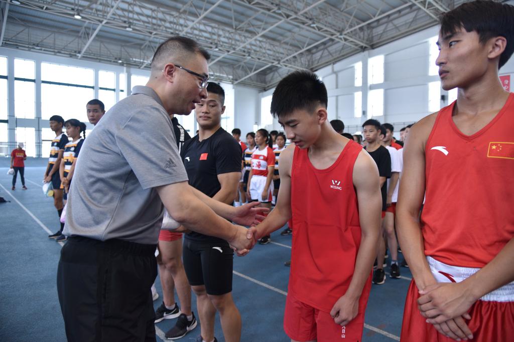 陈佩杰为教练员、运动员们加油鼓劲,并从运动人体科学专业角度指导大家科学训练,加强训练后的营养补充,提高自身免疫力。希望大家脚踏实地、锐意进取、苦干实干,科学训练,掀起备战十四运的热潮,为实现个人梦、体育梦、中国梦而努力奋斗。
