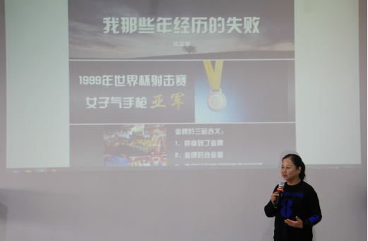 陶璐娜与在场师生分享了她在职业生涯中遇到的种种坎坷以及如何在低谷中涅槃重生。1997年陶璐娜入选国家队并连续两年夺下世界杯总决赛冠军,2000年夺得悉尼奥运会女子10米气手枪冠军,连续两年当选国际射击联合会最佳女射手。但是,2004年雅典奥运会因为在资格赛中发挥失常,陶璐娜失去了进入决赛的资格,遭遇体育生涯的挫折。“我在20多岁就已经成功了,应该说在竞技体育上我们已经到了顶端了,如果再创辉煌的话是很难的,之后会可能就会走下坡路。”对于低谷,陶璐娜并不避讳,而是非常坦然地面对失败并且总结经验。“做任何事情都要脚踏实地,只有把初心保持到比赛结束,才算是真正的胜利。”现在的她从曾经的奥运冠军变成了上海市自行车击剑运动中心党总支书记,从一名射击运动员变成了射击运动和射击文化的推广者。