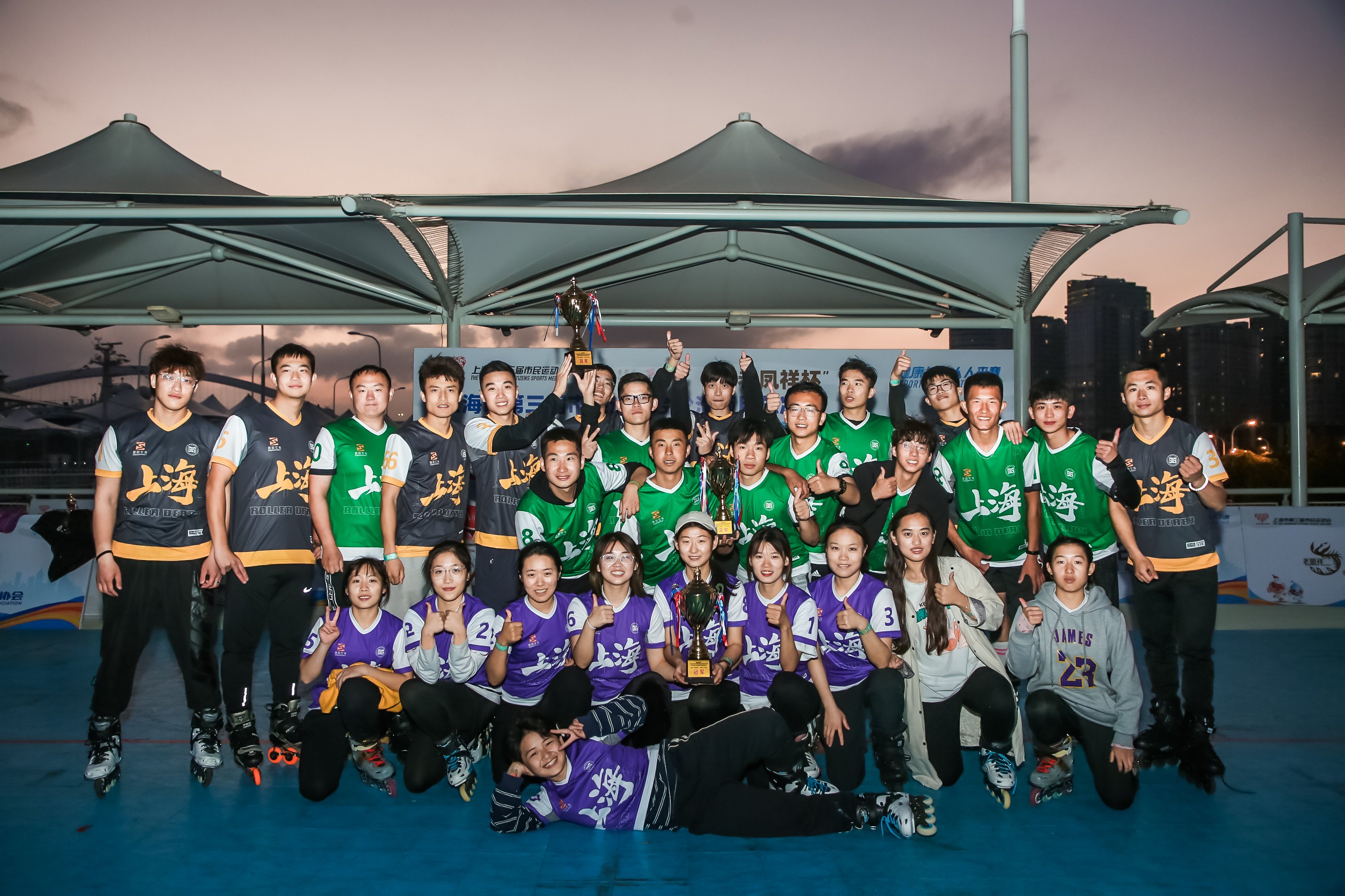 上海体育学院休闲学院队首次出征,分别参加了轮滑阻拦项目成年男子组、成年女子组的竞赛,并包揽的该组别项目的冠军。其中,带队领队为休闲学院党委副书记、副院长顾郑军老师,带队教练为姜嵘嵘老师。
