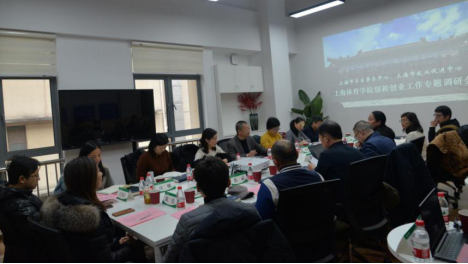 本网讯 1月6日下午,上海市学生事务中心双创服务部联合上海市就业促进中心创业指导处专赴我校进行调研。上海市就业促进中心创业指导处处长费蕾英、上海市学生事务中心副主任王涛、上海市学生事务中心双创服务部部长姚栋华、副部长宋琦、潘国祥、上海市就业促进中心创业指导处王婉芳等就我校创新创业相关工作开展情况开展座谈。上海体育学院党委书记李崟出席座谈会并致辞。上海体育学院副院长、创新创业学院院长王兴放,创新创业学院执行院长吴雪萍,教务处处长邵斌、运动科学学院党委书记熊静,教务处副处长沈高飞,团委书记陈鸿,学(研)工部副部长、创新创业学院副院长陈伟,创新创业学院副院长王少白、学工部就业指导中心副主任庄娜及国家体育大学科技园、双创专员代表参加了本次活动。座谈会由吴雪萍主持。