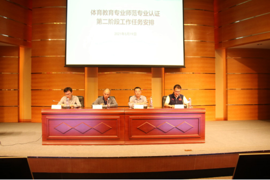 本网讯 5月19日下午,上海体育学院体育教育专业师范专业认证第二阶段任务布置会在图文信息楼报告厅召开。上海体育学院副院长唐炎,教务处处长邵斌,学工部、研工部、双创学院领导、体训学院党政班子成员、相关二级学院教学副院长、认证工作各小组成员、各课程团队负责人及大纲执笔人参加了会议。会议由教务处副处长沈高飞主持。