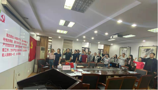 在教工党支部组织委员、纪检委员罗娜的带领下,与会党员通过重温入党誓词,回想入党之初的庄严承诺,牢记为人民服务的宗旨,激发立足岗位创先争优的热情和干劲。