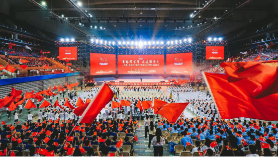 本网讯 5月28日,“青春耀百年 永远跟党走”上海青少年庆祝中国共产党成立100周年主题歌会如期在修葺一新的上海东方体育中心举行。主题歌会分为“有梦·初心”(1921—1949)、“追梦·使命”(1949—2012)、“圆梦·奋进”(2012—今)三个篇章,近30首爱党、爱国、青春励志歌曲串起了一堂艺术思政大课,让青少年备受鼓舞。我校通过组织及自愿报名形式,选拔出了333名参演代表,分为旗手节目组和舞蹈节目组全程参与了本次沪上青年人的盛会。