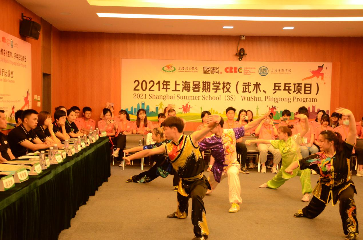 本网讯 6月9日下午,由上海市教委主办、上海体育学院国际教育学院承办的“2021年上海暑期学校(3S)武术、乒乓项目”开营典礼于我校老教学楼223会议室拉开帷幕。武术学院院长郭玉成,国教学院党总支书记刘东锋,国教学院院长吴贻刚、副院长朱东,中乒院副院长陈彬出席开幕式。来自20多个国家的海外学员通过ZOOM会议平台远程参加了开营典礼。留办负责人邹文华,项目负责人张森、徐文婷,任课教师以及志愿者团队一同参加了开幕式。开营典礼由朱东主持。