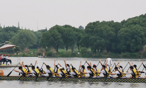 本网讯 6月14日,农历五月初五端午节,在粽叶飘香之际,上海市第八届龙文化全能赛在东方绿舟举行,龙文化全能赛是一年一度由上海市教委、上海市体育局、共青团上海市委员会共同举办,为青少年量身打造的龙文化节日盛会,作为“天龙”(风筝)、“水龙”(龙舟)、“地龙”(龙狮)三个龙文化项目之一的龙舟比赛,龙舟竞渡,奋进中国,中流击水,奋楫者先,本届高校组共有上海市14支高校龙舟队参与角逐,我院学子在本次比赛中赛出友谊、赛出风采。