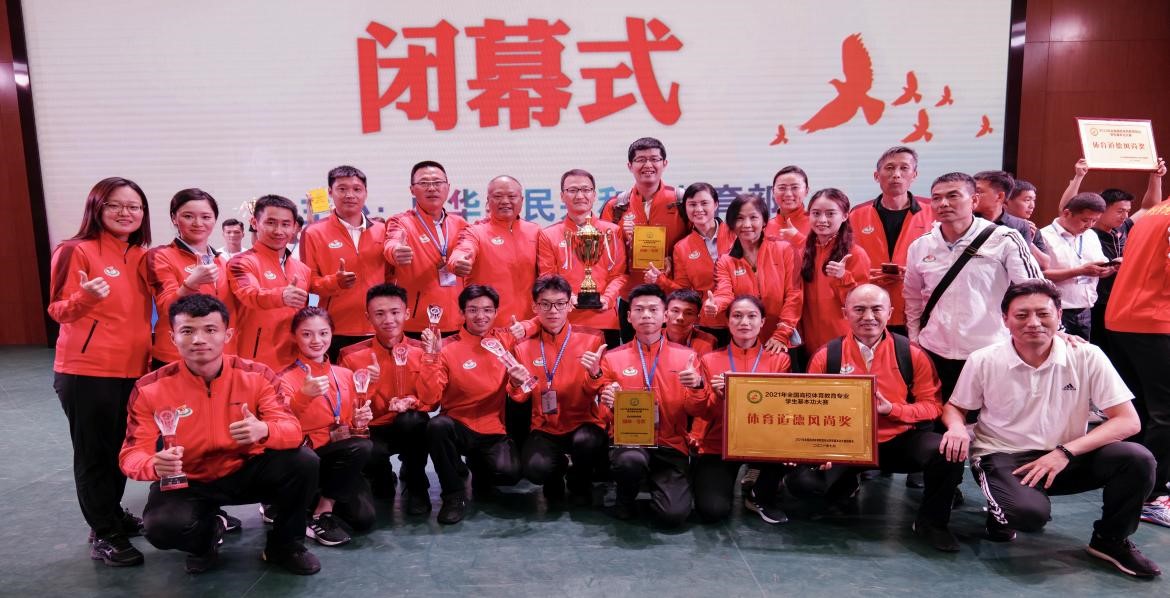 本网讯 7月23日晚,2021年全国高校体育教育专业学生基本功大赛在天津体育学院闭幕。本次大赛由教育部主办,天津体育学院、全国高等学校体育教学指导委员会承办,来自全国24所高校的192名体育教育专业本科生参加了此次比赛。我校获得本次基本功大赛团体一等奖(第一名),运动技能类团体一等奖(第一名),基础理论知识与教学技能类团体一等奖(第二名),体操、武术、足球、专业基础理论综合单项奖第一名,微课、英语单项奖第二名,田径单项奖第五名,并荣获体育道德风尚奖代表队,徐恺和晁宁雪两位同学被评为优秀运动员。上海市教委副主任毛丽娟、上海体育学院党委书记李崟出席闭幕式,赞扬上海代表队沉着冷静、不畏强手、顽强拼搏、奋勇夺冠,为上海体育学院以及上海教育系统赢得了荣誉。