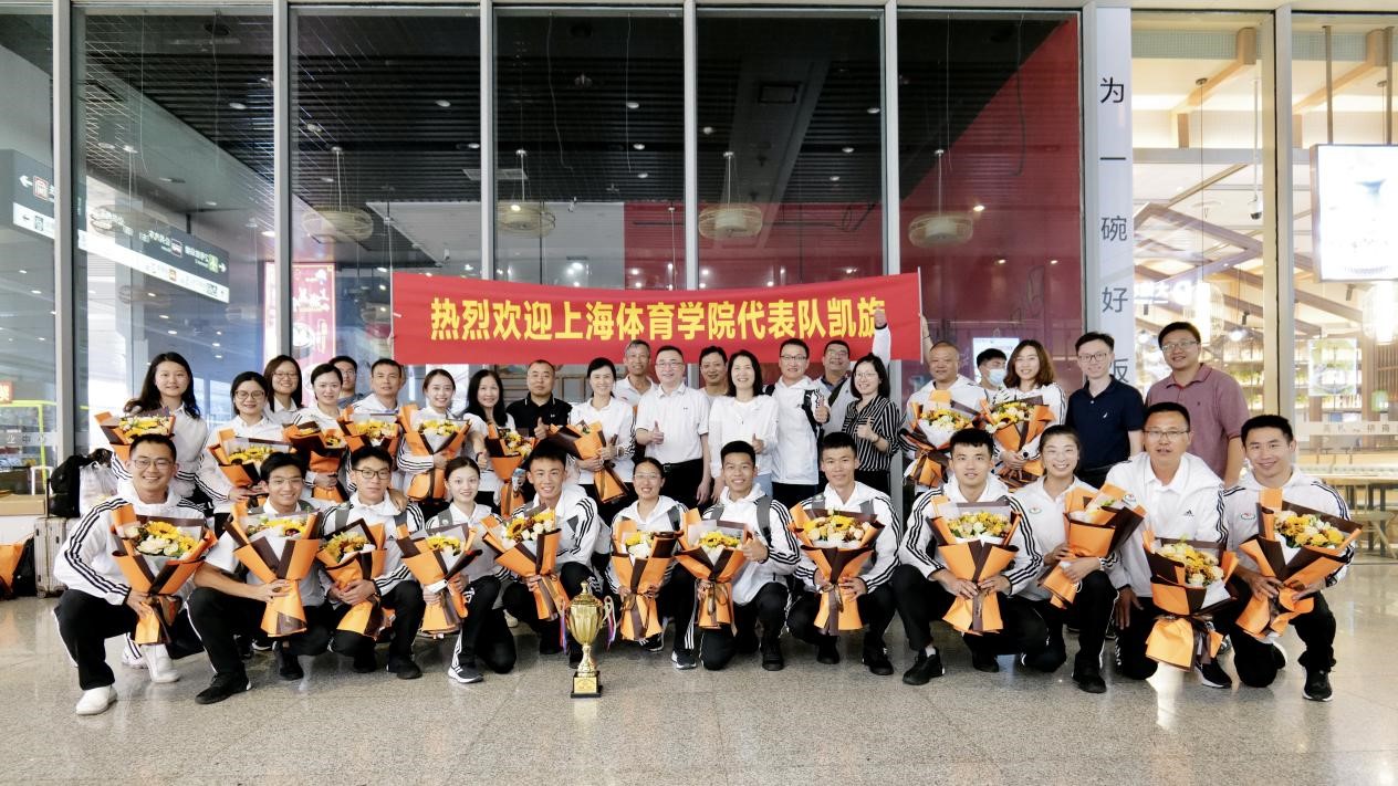7月24日,上海体育学院党委副书记杨玲,党委副书记、副院长王继红,学生工作部部长梅朵,教务处副处长沈高飞,体育教育训练学院党委副书记曹智超等在上海虹桥站迎接我院代表队凯旋,并由我院学生代表向代表队成员献花。