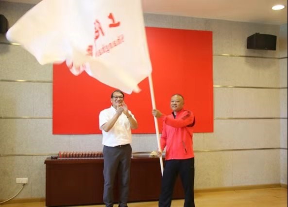 陈佩杰校长为我校参赛团队授上海体育学院院旗