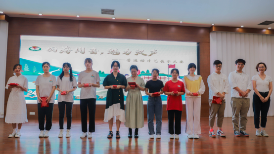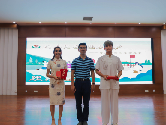 最后,国际教育学院副院长朱东,教务处教务科科长高敏,汉语国际教育团队负责人陈建萍宣布获奖选手并颁奖,各位选手收获荣誉的同时,更获得了推进母语普及、发扬魅力汉声的一份鼓舞,大家的脸上无一例外地洋溢着欢悦的神色,民族自豪之情溢于言表。