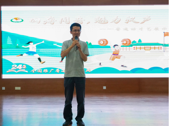 10月8日,推普周系列第二场活动——“四海同音·魅力汉声”普通话才艺展示大赛在活动中心三楼多功能厅拉开帷幕,现场座无虚席、气氛热烈,可见绿瓦学子对于本次活动的参与积极性。国际教育学院党总支书记刘东锋、院长吴贻刚、副院长朱东、教务处教务科科长高敏以及其他相关老师出席了本次比赛,党总支书记刘东锋作开幕致辞。他表示,母语永远是每个人心中最美的语言,而我们汉语更有着迷人的音韵美,所以掌握好这门语言、掌握好普通话于我们华夏儿女而言至关重要,这也是我院承办本次活动的初心所在。