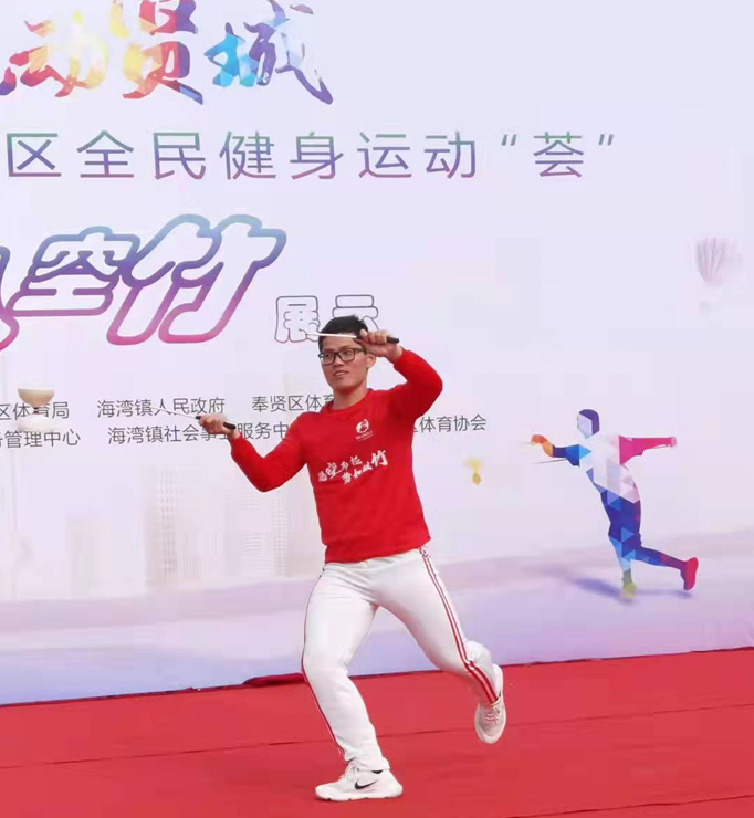 本网讯 10月17日上午,位于奉贤区海湾镇上海“都市菜园”外的广场上热闹非凡,奉贤区社会体育中心在这里特别举办“悦动贤城”2021年奉贤区全民健身“荟”千人空竹展示活动,我校空竹社及民间体育专项班在内的十名同学在休闲学院杨小凤教师的带领下受邀参加了此次展示的开幕式表演及展示环节。