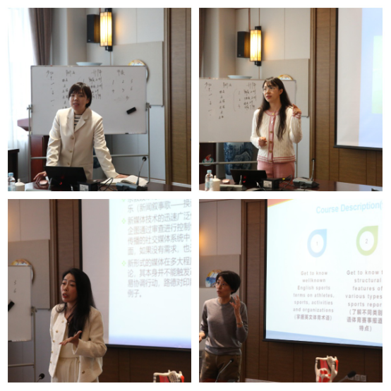 教学展示和竞赛由教学设计、课堂教学和教学反思三部分组成,参赛教师现场抽取展示顺序,蔡东燐老师以“中国少数民族文化传承”、孙正昊老师以“华尔兹舞基本步的教学”、邵绿老师以“电视画面编辑——动接动之第一节”、张帆老师以“拟态环境理论”、尹如歌老师以“看得见的声音——以中华传统武艺为呈现形式的语音与发声关键问题诠释”、李丁老师以“社交媒体的前世今生”、路珏老师以“Race and Racism in English Sports Reports”、吴仁塔娜老师以“舞蹈音乐的节奏”为主题作了展示。