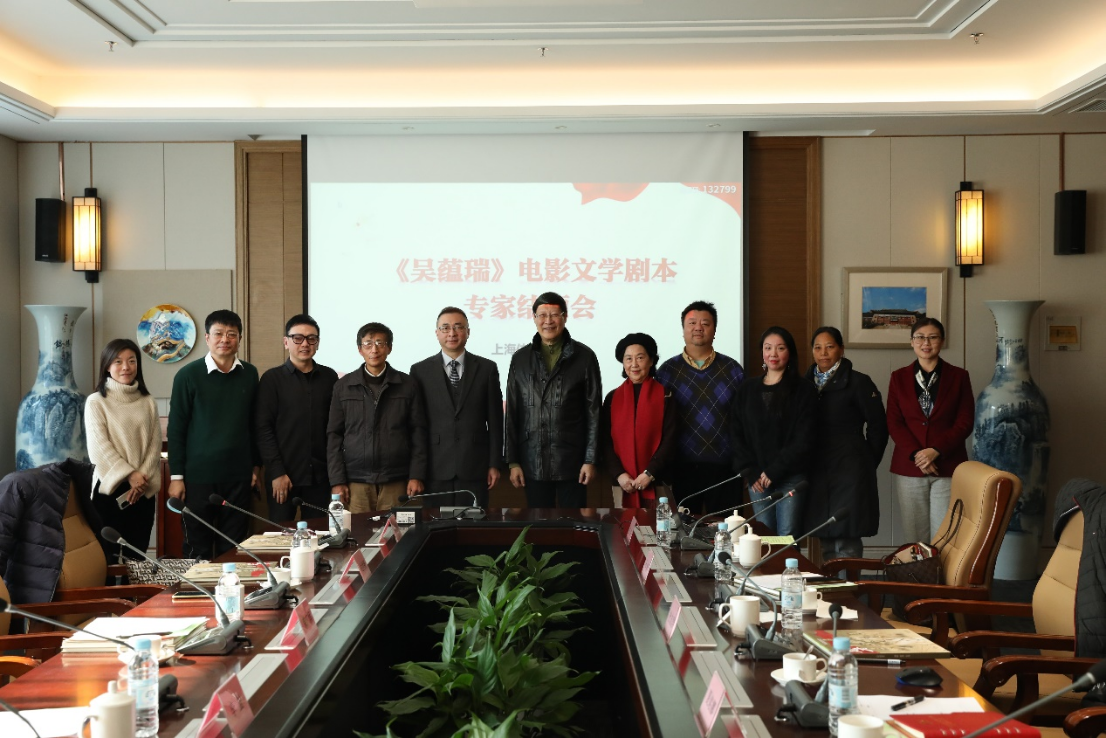 本网讯 12月29日上午,《吴蕴瑞》电影文学剧本专家结项会在上海体育学院交流中心召开。结项会邀请原上海戏剧学院院长荣广润教授,原上海戏剧学院科研处处长刘明厚教授,原SMG重大题材创作办和尚世影业编审、正高(二级)编审达世新,上海戏剧学院教授、上海电影家协会副主席石川,上海戏剧学院导演系副书记、副教授石俊参会讨论,上海体育学院党委书记李崟,党委宣传部副部长夏铭娜(主持工作),传媒与艺术学院院长杜友君教授,传媒与艺术学院副教授杨珏出席会议。会议由上海体育学院传媒与艺术学院教师崔莹主持。