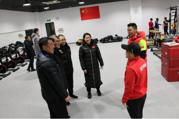 本网讯 2月16日上午,上海体育学院党委书记李崟,党委副书记、院长陈佩杰,党委副书记杨玲在国家拳击队领队文江和体训学院服务保障团队的陪同下前往国家拳击队集训现场慰问集训备战的教练员和运动员。