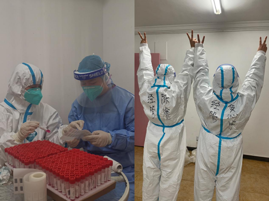 因为封控期间,足不出寝室。同学们喝热水要使用公用饮水机,一楼的饮水机坏了,必须去二楼接水。陈睿团队的志愿者要为15个寝室,46位同学接水。同学们大多数没有水壶,用的是玻璃杯,二楼的饮水机出热水有一点问题,特别容易把手烫伤。志愿者们穿着厚厚的防护服,一次次地上下楼接水,送到同学们寝室,几次下来就大汗淋漓,每个队员都毫无怨言。“把饭挂在宿舍门口,从里面传来‘谢谢’的声音;上下楼梯遇到和我一样的志愿者拿着物资上上下下,大家相视一笑;深夜做完核酸检测看到疲惫却依旧坚守岗位的朋友,大家不约而同地比了一个骄傲的剪刀手……每一个瞬间都温暖得让人落泪,成为了一段独特的青春记忆和见证。”陈睿认为,疫情突如其来,短时间完成合理分工和组织调配需要人人支持、人人参与,大家心系一起才能共渡难关。