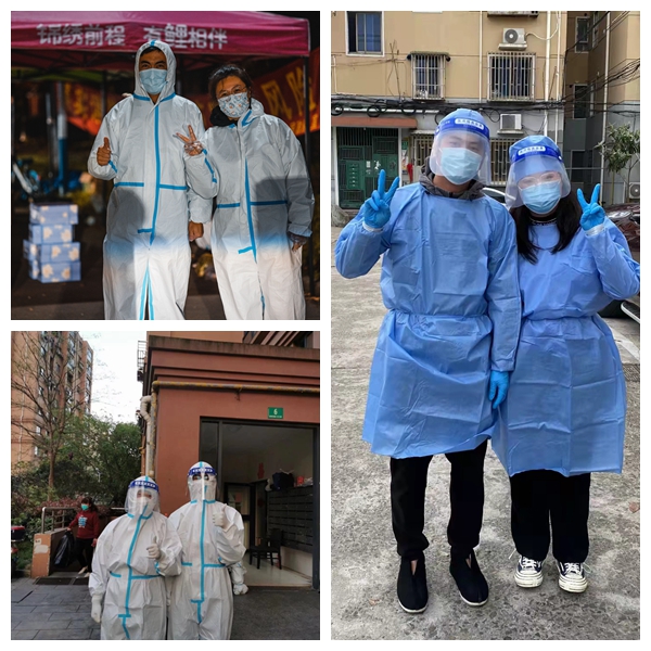 国际交流与培训部教师张丁丁在杨浦区新江湾城街道参加社区核酸检测、物资分发和小区快递志愿服务。