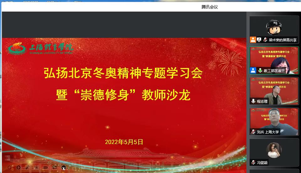 本网讯 为深入贯彻落实习近平总书记在北京冬奥会冬残奥会总结表彰大会上的重要讲话精神,5月5日下午,学校党委宣传部和教师工作部两部门联合举行弘扬北京冬奥精神专题学习会暨“崇德修身”教师沙龙活动。受疫情影响,活动通过腾讯会议平台以线上方式进行,特别邀请江苏省体育科学研究所《体育与科学》编辑部主编程志理和上海大学体育学院院长刘兵作专题辅导报告。校党委副书记潘勤,党委宣传部副部长(主持工作)夏铭娜,党委教师工作部部长、机关党委书记匡淑平等出席活动,各二级学院和机关300余名教职工参加线上活动。匡淑平主持活动。
