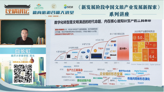 白教授的讲座分为:智能时代的管理研究、元宇宙与幸福产业、十四五数字文旅发展趋势三部分。