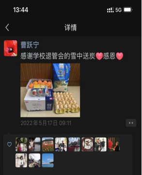 这几天在微信群里、朋友圈里,大家晒出了学校送来的慰问品图片,纷纷配上了感谢的语句:“学校送的抗疫物资大礼包已收到,让我感动不已,还是娘家好呀!”;“感谢学校对离退休教职工的关怀照顾,谢谢你们的辛劳付出,服务周到贴心!祝学校明天更美好!”;“收到慰问品后非常激动,打开一看品种丰富,也很精致新鲜,这是学校、退管会领导对我们离退休老人莫大的关怀,特别暖心,感谢领导,感谢志愿者,你们辛苦了!”老同志们难掩心中的激动,纷纷表示,有学校的关心关爱,有信心和决心战胜这场疫情,为打赢大上海保卫战做一份贡献!