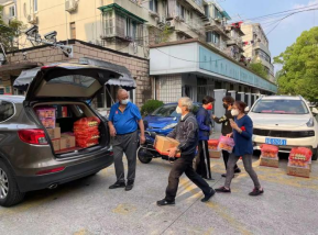 在配送过程中,退管会详细部署,解决物资配送的“最后一百米”难题。最常出现的情况是配送到位后,电话联系不到本人,退管会和各党支部书记、块长的同志们总是在第一时间想尽办法与老同志们联系。有的小区封控严格,不允许居委组织团购外的快递进入小区,有的老同志夫妻俩独居而且都年岁已高,听力下降,接不到电话,退管会的同志们和党员志愿者队伍都会及时想办法帮老同志们搬运上楼送到家门口,为老同志打通生活物资配送的“最后一百米”难题。