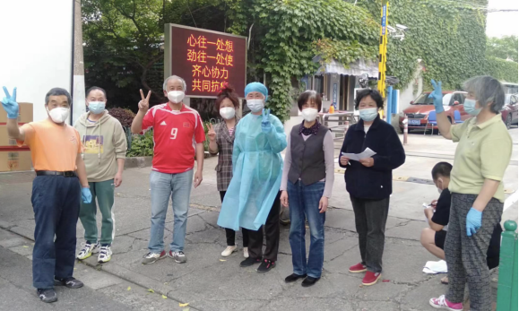 体院小区500弄、542弄和555弄三个小区老同志相对集中、人员多、岁数大等特点。退管会沈志华同志组织了第六支部书记严惠建、块长龚依琴和党员志愿者队伍为110余位老同志们派发物资。老党员张政老师用私家车做为短驳转运车,为物资转运发挥了重要作用。