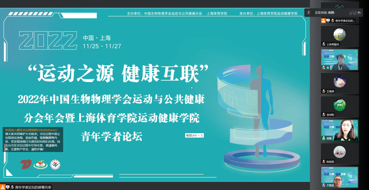 本网讯11月25日,“运动之源 健康互联”2022年上海体育学院运动健康学院青年学者论坛在线上召开。会议开幕式于11月25日上午9点在线上举行,上海体育学院副院长唐炎、上海市教委人才处处长王庆宇出席大会开幕式并作讲话,上海体育学院人事处处长焦振伦、运动健康学院党政领导班子、青年学者、参会代表共同参加。开幕式由运动健康学院党委书记熊静主持。