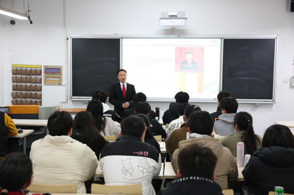 观看完视频,党委书记李崟说,党的二十大报告明确要求,到2035年,建成教育强国、科技强国、人才强国、文化强国、体育强国、健康中国,体育承载着以中国式现代化推进中华民族伟大复兴的时代使命。新时代的体育不再是我们传统认识上的体育,它是提高人民健康水平的重要途径,是满足人民群众对美好生活向往、促进人的全面发展的重要手段,是促进经济社会发展的重要动力,是展示国家文化软实力的重要平台,体育的内涵与外延都发生了前所未有的新变化。“体育是深刻理解和把握我国社会主义现代化强国建设的一个窗口、一把钥匙,作为体育学院的一名大学生,我们深入学习习近平总书记关于体育的重要论述精神,非常必要。这就是我们为什么要开设这门课的原因。”