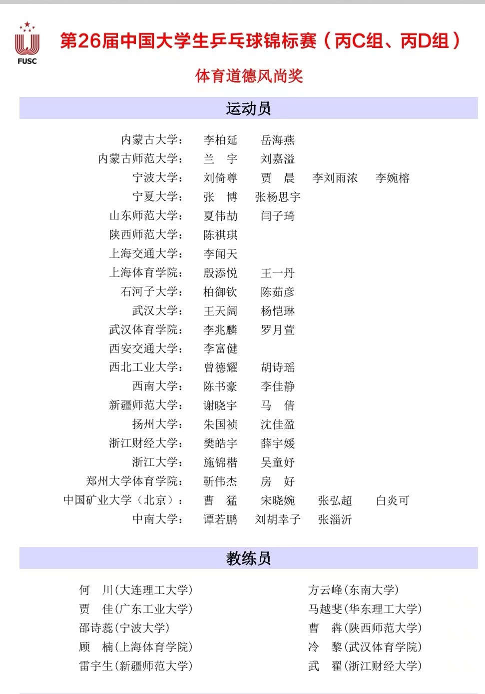 [报送单位/中国乒乓球学院]