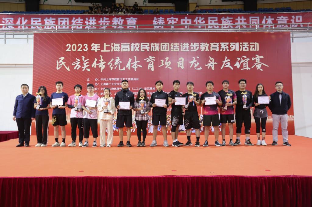 本网讯 5月17日,2023年上海市高校民族团结进步教育系列活动之龙舟友谊赛在上海第二工业大学举行。本次龙舟友谊赛由上海市教卫工作党委统战处主办,共吸引了上海20所高校来自23个民族的280名大学生参赛。由体育教育学院16名队员组成的上海体育学院龙舟队参加了比赛,大家齐心协力、顽强拼博,赛出了友谊、赛出了风采。
