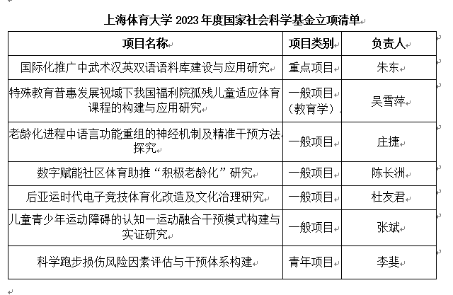 本网讯 近日,国家自然科学基金委、全国哲学社会科学工作办,陆续公布了2023年度集中接收申请的科学基金项目与社科基金项目评审结果。我校获批两类项目共17项:其中国家自然科学基金项目10项(青年科学基金项目6项,面上项目4项),获批资助直接费用379万元;国家社会科学基金项目7项(重点项目1项,一般项目4项,青年项目1项,教育学单列学科1项)。在我校获批的基金项目中,研究领域涉及力学科学、遗传学与生物信息学、神经科学与心理学、分子生物学与生物技术、生理学与整合生物学、体育学、教育学、语音学,彰显了我校多学科交叉融合发展的科研实力,是我校“双一流”建设世界一流学科和高水平地方高校的重要支撑。