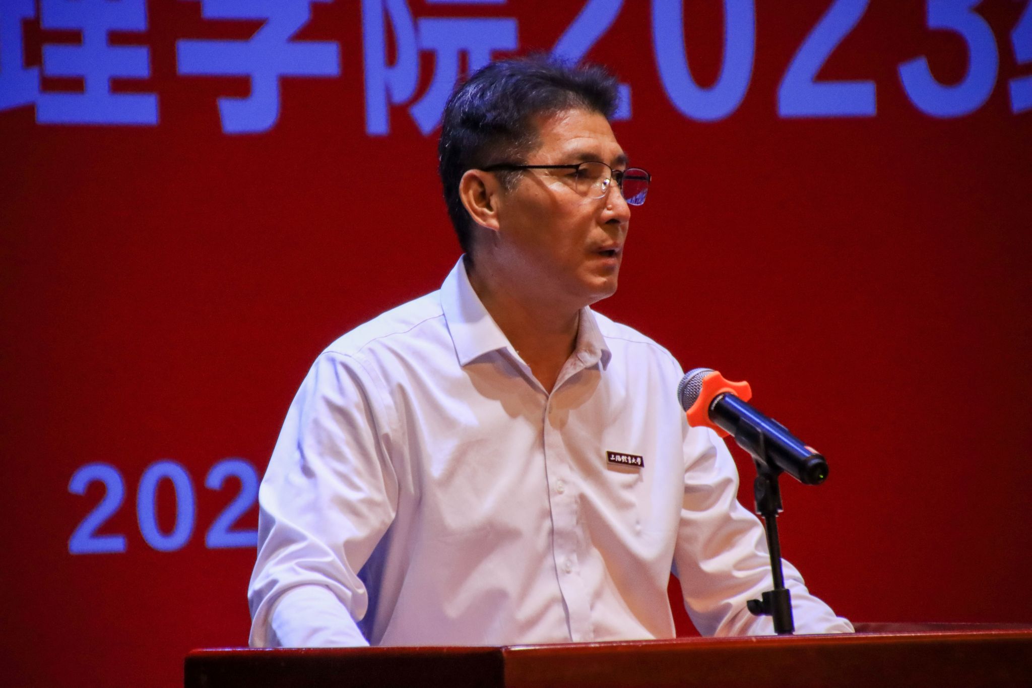学院党委书记游林生为新生寄语。他认为,每一代人的青春都会有迷茫,都关乎理想和成长。进入经管门,就是经管人。强国建设,教育何为?求学上体,青春何为?学院将和同学们同舟共济、同题共答,助力其成为具有鲜明上体经管烙印的一流人才。他提出三点希望:一、早立凌云志,对人生有更高远的追求;二、勤于钻研学,对学习有更强烈的渴望;三、坚守真善美,对生活有更深沉的热爱;学会清白做人,认真做事,精益求精做学问。