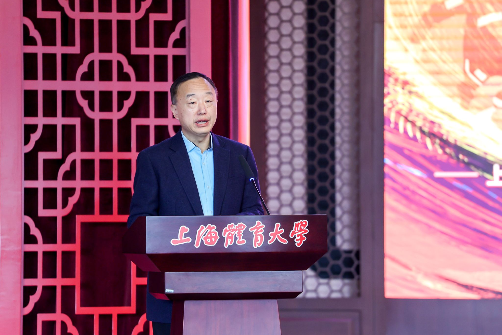 校党委书记李崟与上海市体育局党组副书记、副局长陆檩共同开启了“体育荣光照进著名体育城市”的红色立方体大门。