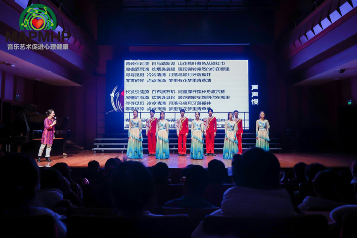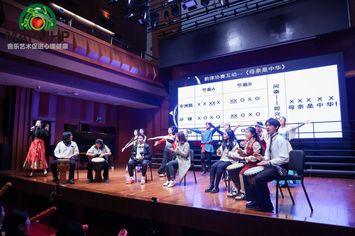 在歌曲《声声慢》律动互动环节,参与者们通过学唱体会到了中国传统音乐的独特韵律和深厚的文化含义。韵律协奏互动环节,在艺术学院党员教师吴仁塔娜与两位鼓手的带动下,参与者们踊跃上台学习打击乐器,最终在现场共同演绎《母亲是中华》经典艺术歌曲。通过文化艺术活动中的具体实践,党员教师们传递了积极向上的精神风貌,彰显了党建引领的重要价值。艺术参与者们纷纷表示,通过这次活动,他们更加深刻地理解了文化艺术对心理健康的积极影响,也为未来的心理健康研究和实践积累了宝贵经验。