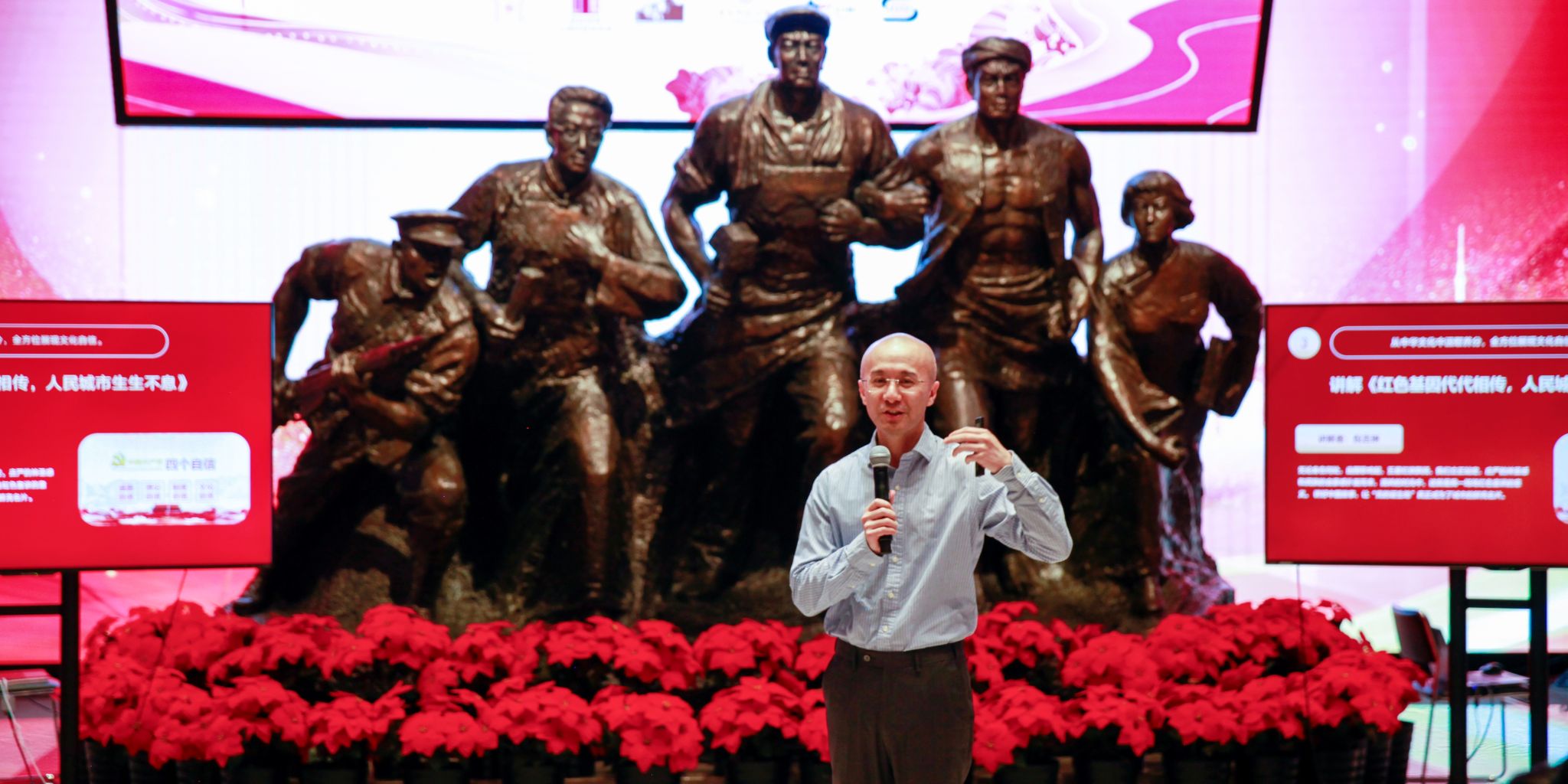 为了充分展示《艺术语言表达》课程的教书育人成果,在示范课的第三篇章主讲人特邀中共四大纪念馆讲解员倪吉琳参与课程示范环节,她以饱满而富有感染力的表述方式,深情演绎了《红色基因代代相传,人民城市生生不息》的故事。被艺术语言浸润后的场馆讲解无疑是对红色文化生命力的生动诠释,也是对人民城市精神风貌的完美展现,让人们在回望历史的同时,更加坚定了奋勇直前的信心和决心。