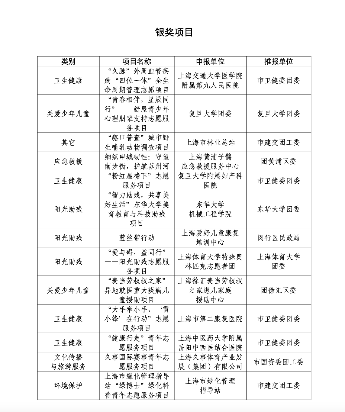 本网讯 近日,第四届“奉献杯”上海青年志愿服务项目大赛暨第七届中国青年志愿服务项目大赛上海地区赛顺利举办,我校“爱与碍,益同行”——阳光助残志愿服务项目喜获银奖并拟推国赛。