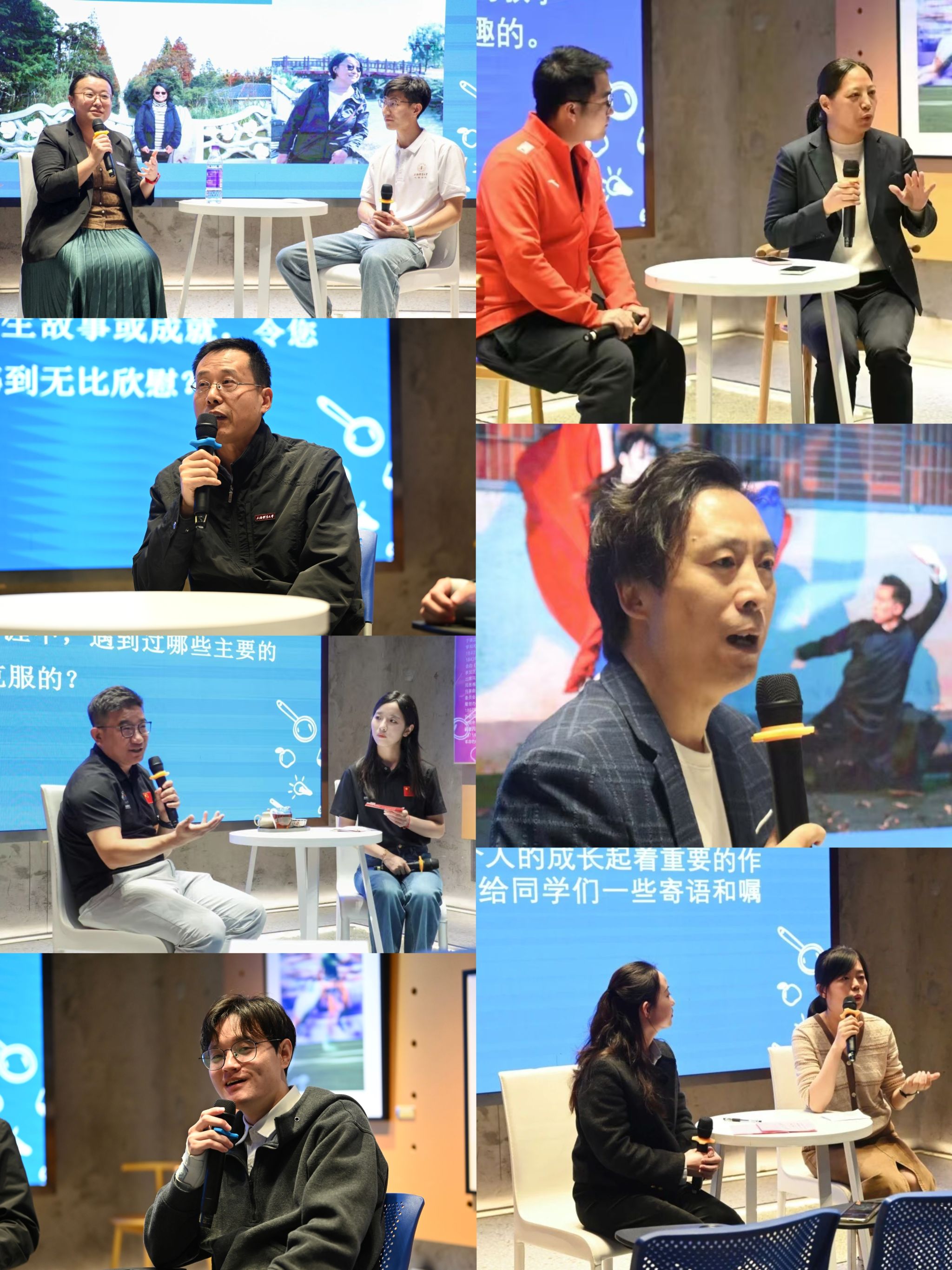 活动中,各位老师以独特的视角和丰富的经历,与同学们聊聊工作心得、谈谈人生思考。于永超老师与蔡赟老师均分享了职业身份转变的历程,强调了教育不仅是知识的传递,更是心灵的陪伴与潜力的激发。他们用自己的故事激励学生,展现了教育路上师生间温暖的陪伴与相互成就。顾楠老师与席饼嗣老师,作为曾经的运动员和武术教育者,他们深谙教练与教师的责任与担当。他们不仅传授技艺,更培养团队意识和责任感,致力于培养新一代运动员和武术传承者,让传统文化在新时代焕发新活力。夏俊老师与罗娜老师,则分别从科研与教学管理的角度,探讨了教育的深度与广度。夏老师致力于打破信息壁垒,激发学生科研兴趣,提升综合素养;罗老师则鼓励学生磨砺自学与自省能力,做自己人生的掌舵者,用知识的光芒照亮前行的道路。周柳老师从心理的角度出发,现身说法,阐述了“术”与“道”的关系,主张学用并举。周老师鼓励学生走出校园,将所学应用于实践,书写人生的精彩篇章。而刘欣老师,则以其独特的艺术教育理念,让学生在潜移默化中感受美育的力量,为他们的未来发展指明了方向。分享活动收官场,项贤林老师和王其跃均对同学们的未来规划提供了中肯的建议。项老师强调:要认准一个目标坚持不懈,想把一件事情干好就要做到脚踏实地和知行合一。此外,还应该与时俱进,合理运用新科技。王其跃老师忠告同学们:在思考事业目标时应该从“擅长什么”和“喜欢什么”这两个点切入,多经历一些面试,多积累经验。同学们则通过互动提问、分享感悟等方式,吸收接纳老师们富有见地的观点以及极具启发性的思想理念,表达对老师们的感激之情与敬仰之心。