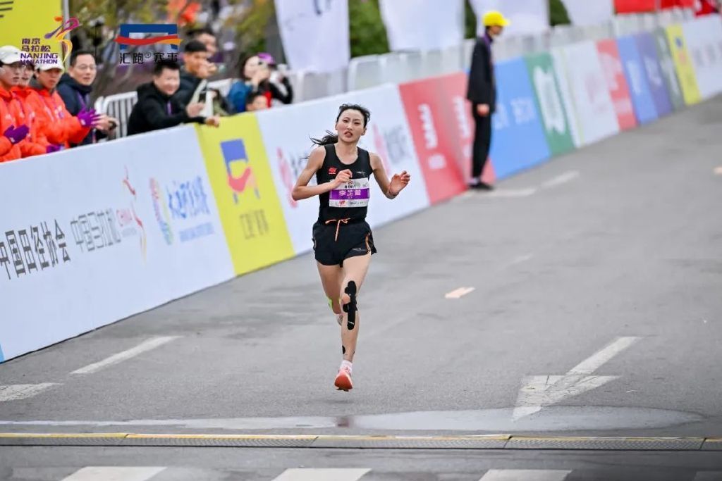 本次比赛于清晨7:30鸣枪起跑,尽管天气阴雨且气温较低,李芷萱凭借出色的竞技状态和沉稳的心理素质,在赛道上展现了强劲实力:从起跑开始就保持稳定节奏,经过玄武门、鼓楼滨江等标志性路段后,一路冲刺,以国内第一的成绩冲过终点线。